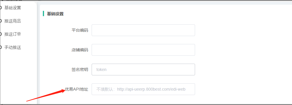 技术有处理在插件基础设置添加了一个手动设置的栏,如果不确定使用的是哪个api地址可以和优易客服核实一下,填写对应的在后台优易API地址处即可,之后再留意看下商品是否有推送成功同步显示在优易后台