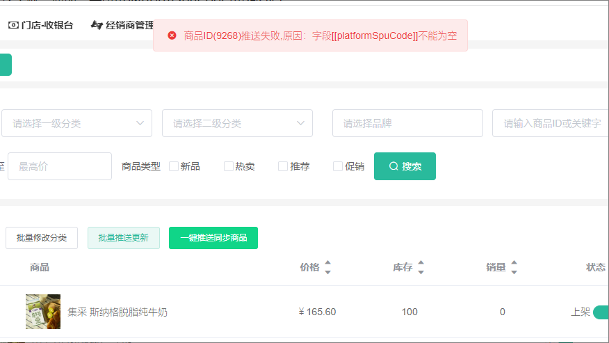 手动推送订单,提示:商品未同步无法推送