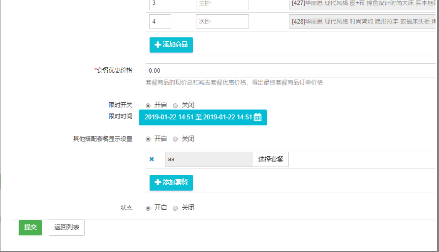 商城后台-应用-营销类-商品套餐