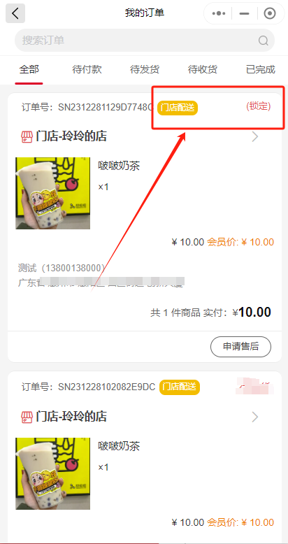 用户前端下单(注意收件人地址,需要点击授权获取经纬度信息,才可以下单),下单后订单是锁定状态。