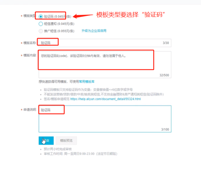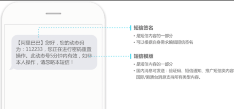 模板内容示例:您的验证码${code},该验证码5分钟内有效,请勿泄漏于他人!