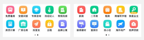 1. 金刚区是页面的核心功能区域、是聚合各类子板块的入口,为各个子板块分发内容。一般位于页面中头部位置,展示样式为多行排列的宫格图标。一般为2-3行,每行4-10个,内容多的时候可左右滑动。