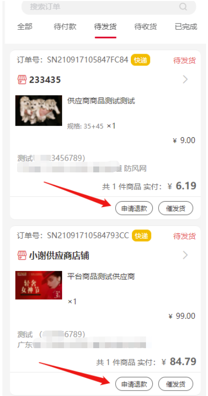 如果设置订单完成多少天内可以申请退款,请注意同时设置分销佣金结算、供应商结算、全返等时间期限,避免佣金分配后用户再进行退款申请。